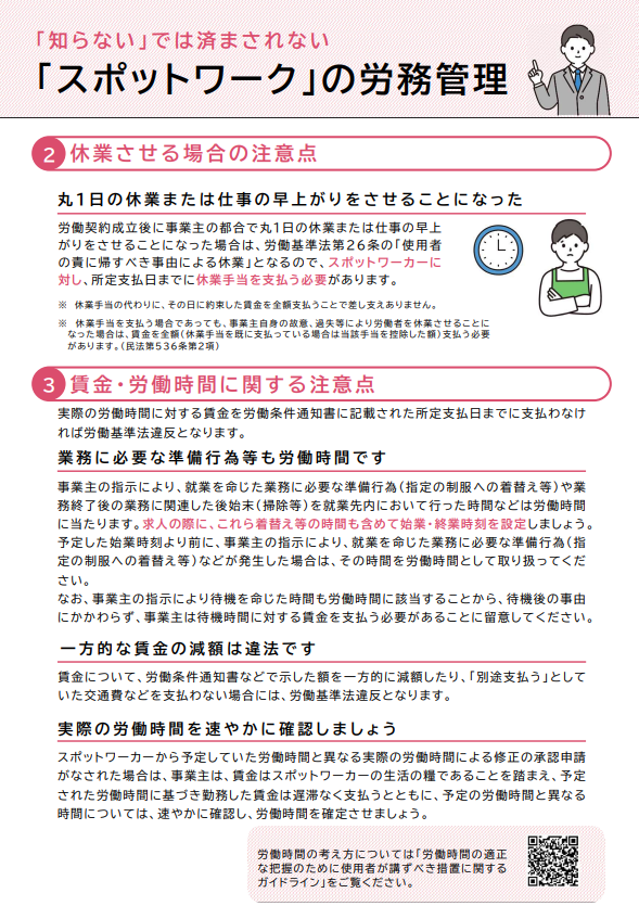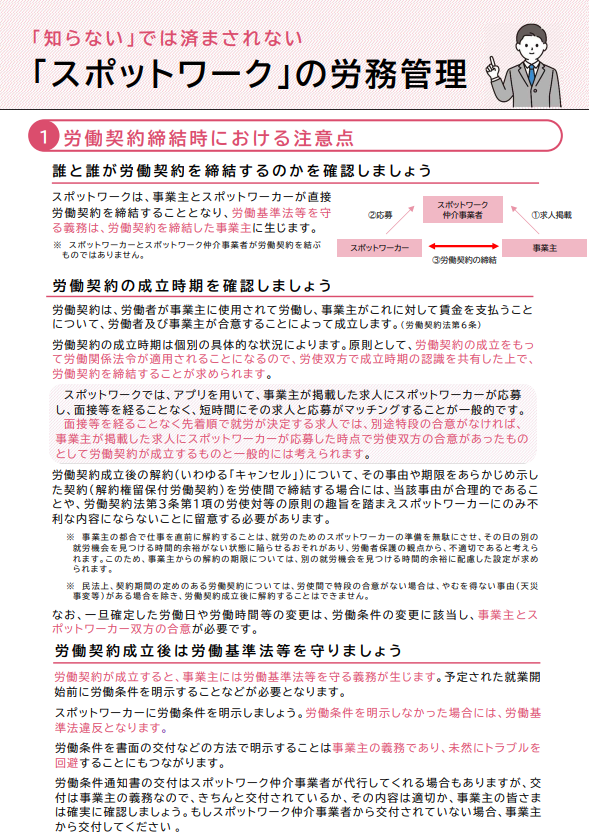 【「スポットワーク」の労務管理(使用者向けリーフレットより抜粋】