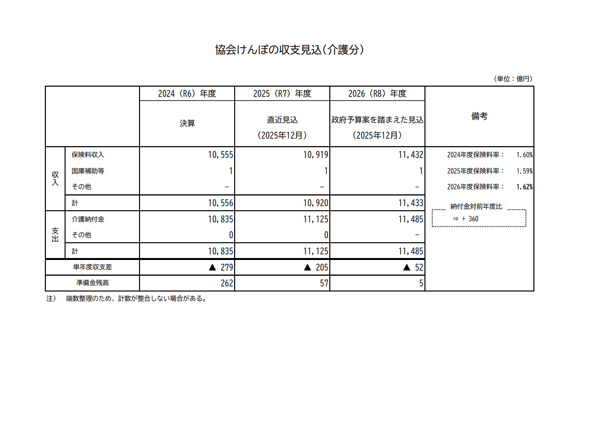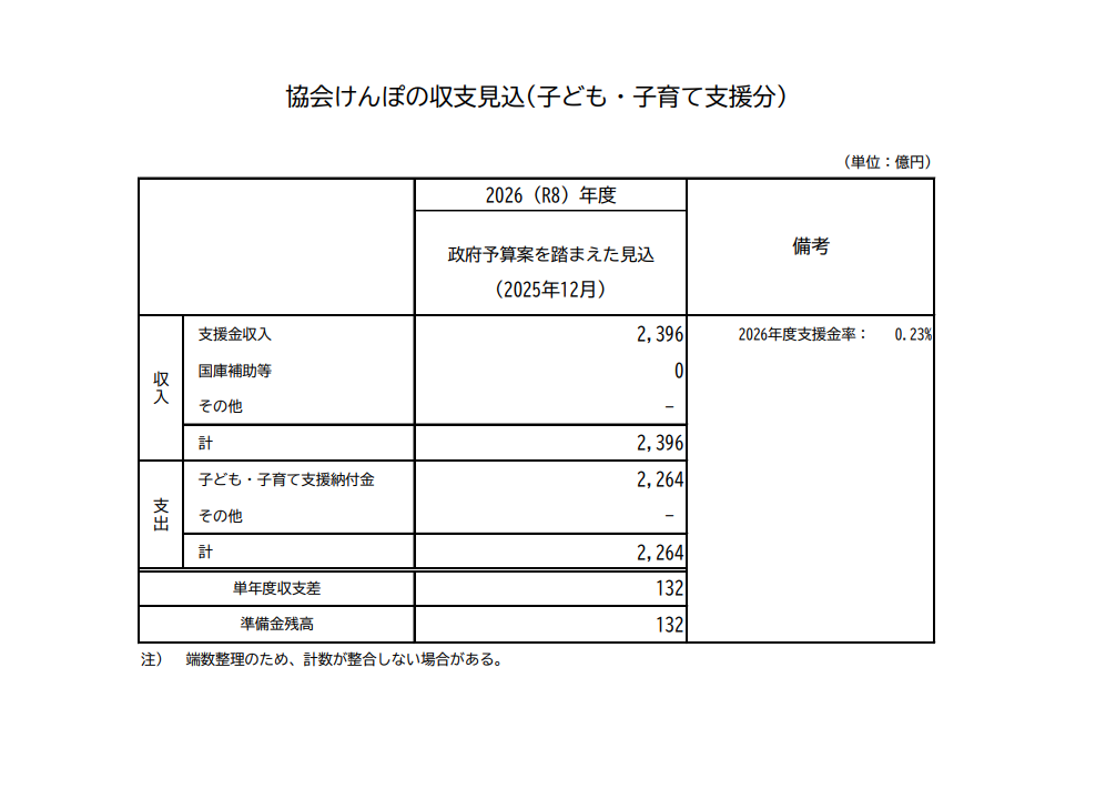 主に中小企業の従業員が加入する全国健康保険協会(協会けんぽ)から、「2026(令和8)年度政府予算案を踏まえた収支見込みについて(概要)」が公表されました。